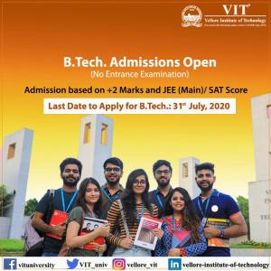 B.Tech. Admissions open to all the four campuses of VIT. The admission is based on +2 / Pre-University marks in Physics, Chemistry and Mathematics/ Biology. Applicants are required to upload the relevant documents at the earliest.